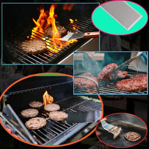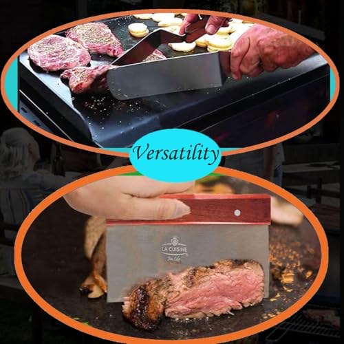 Multiuso: le spatole e il raschietto in acciaio inossidabile sono adatti per una vasta gamma di attività di cottura. Sono ideali per barbecue, raschiare impasti, capovolgere hamburger, carne, uova e pancake.
