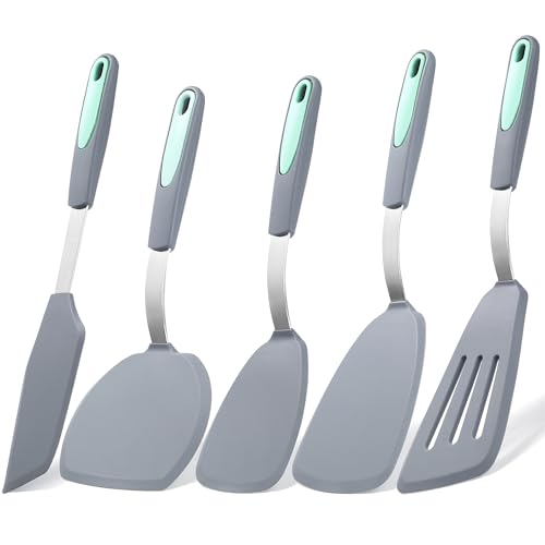 To encounter 5 Pieces Silicone Spatula Set, BPA Free Silicone Turner Spatulas, Heat Resistance Cooking Utensils, Flip Turner for Fish, Egg, Pancake, Light Grey