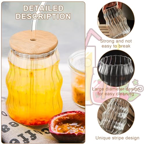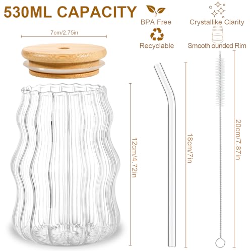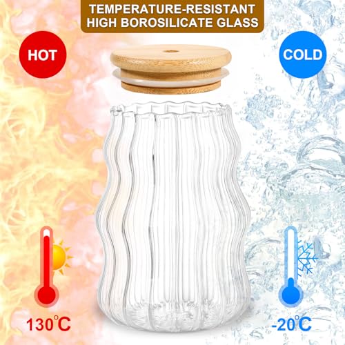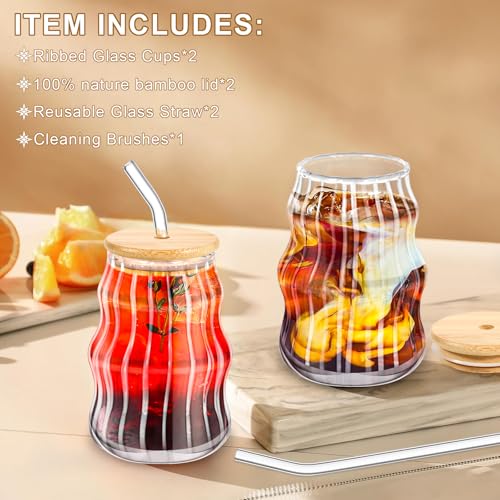 【Set di bicchieri di vetro】:I bicchieri di vetro ondulati includono: 2 bicchieri, 2 coperchi e 2 cannucce di vetro riutilizzabili e 1 spazzola per cannucce, grande capacità di 530 ml, sia per bevande fredde che calde, set di bicchieri può soddisfare tamente tutte le esigenze.