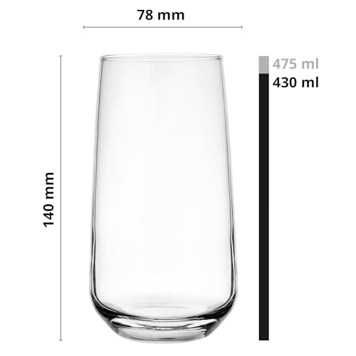 Glasmark KROSNO 1992 Set di bicchieri da long drink, 4 pezzi, 430 ml, bicchieri da acqua, bicchieri da cocktail, in vetro highball, lavabili in lavastoviglie.
