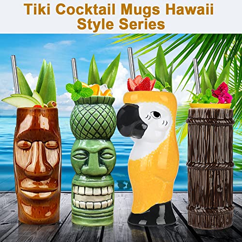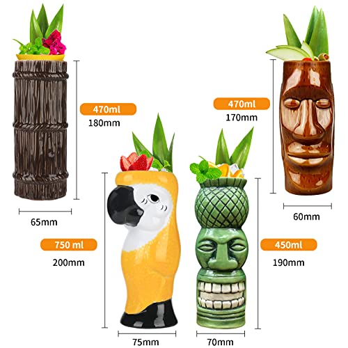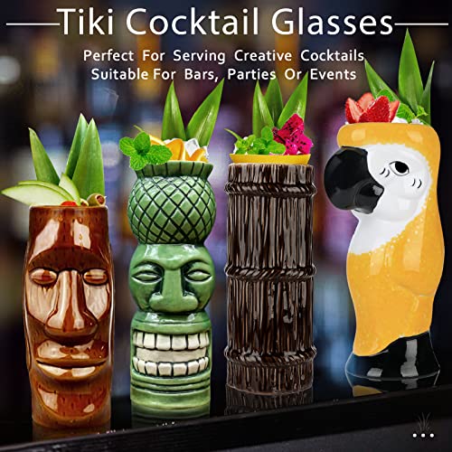 Tiki Set di 4 tazze in ceramica per cocktail Tiki grandi tazze tropicali hawaiane Tiki party creativo cocktail bicchieri bar Drinkware Premium tropicale esotici carino bicchieri