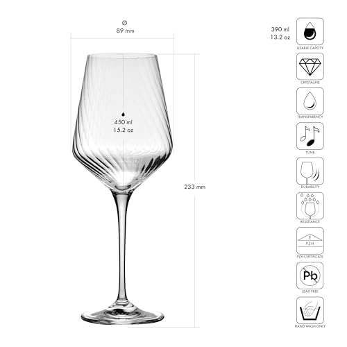 Krosno Calici da vino con texture, 450 ml – Set da 4 | Per vino rosso, bianco, spumante e cocktail | Design Collezione LUMI | Lavabili in lavastoviglie | Cristallo senza piombo