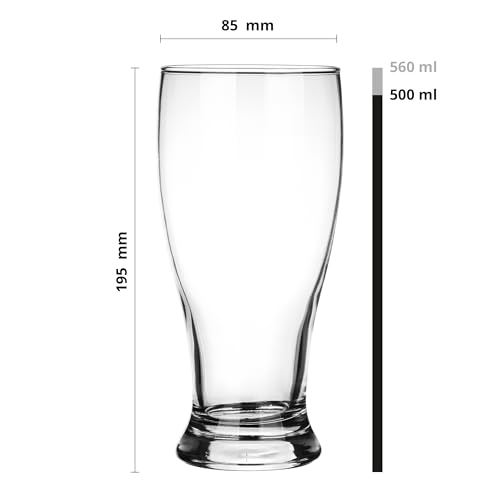 Glasmark Krosno – Set di bicchieri da birra da 0,5 litri, per birra, bicchieri, bicchieri, per birra, birra, birra, bicchieri, lavabili in lavastoviglie, 6 x 500 ml