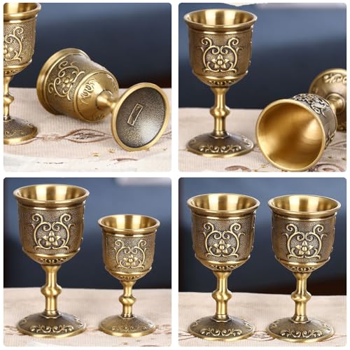 Hapivida Calice da Vino in Metallo Goffrato, 7,3 x 3,9 cm Mini Calice da Vino in Bronzo Goffrato Chalice Coppa da Liquore Europea Vinos per Bere Whisky Vodka (S)