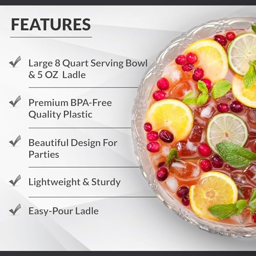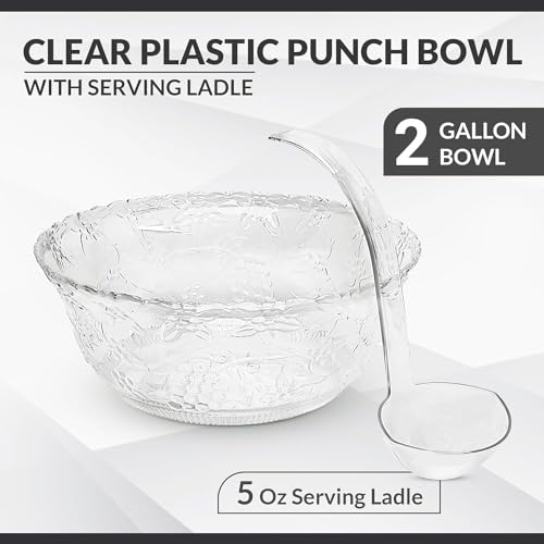 S.G – Ciotola da punch in plastica da 2 galloni con mestolo – Ciotola da punch pesante in plastica per servire – Ciotola da portata da 8 litri con mestolo in plastica da 141,7 g