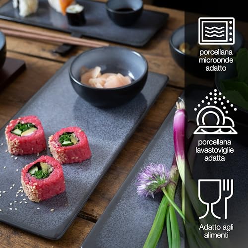 SERVIZIO PER SUSHI – Il set da 29 pezzi per 4 persone comprende piatti o ciotole giuste per ogni ingrediente: che si tratti di sushi, sashimi, zuppa di miso, zenzero, salsa di soia, wasabi, gelato, mochi o altri snack. Con questo set da portata è possibile disporre il cibo in un modo straordinario