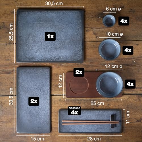 Moritz & Moritz Set di stoviglie per sushi per 4 persone – 29 pezzi – Set per servire il sushi con 3 piatti per sushi – 4x piatti per sushi, ciotola per miso, ciotoline e bacchette