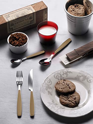 PRATICO DA UTILIZZARE: Il pratico set posate ha uno stile minimal e funzionale, caratterizzato da un manico ergonomico color betulla, comodo da tenere in mano per tutta la durata dei tuoi pasti.