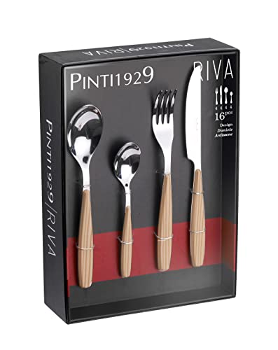 Pintinox Riva Set 16 Posate effetto legno, per 4 persone, adatte all’uso in lavastoviglie, Acciaio Nichel Free, Manici Colore: Betulla