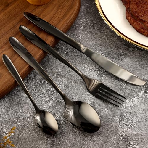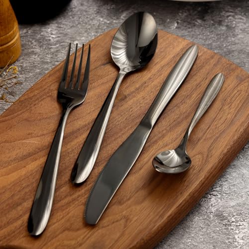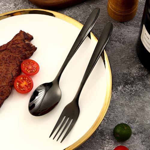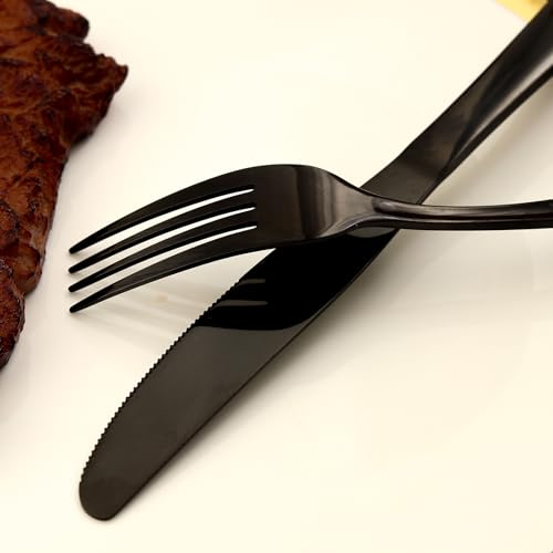 SANLI Set Posate Nero 6 Persone in Acciaio Inox con Coltello Forchetta e Cucchiaio 24 Pezzi Elegante e Resistente per Casa e Ristorante
