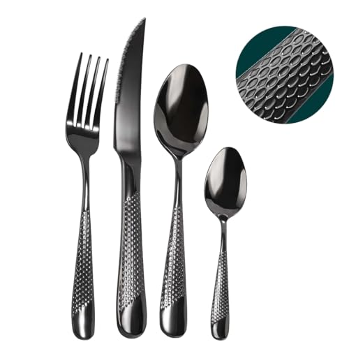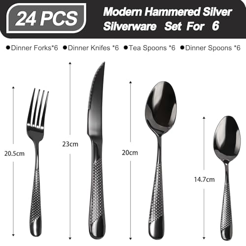Set di posate da 24 pezzi, posate martellate, in acciaio inox, forchetta, cucchiaio, set di posate per 6 persone, posate moderne in argento, per casa/ristorante/feste