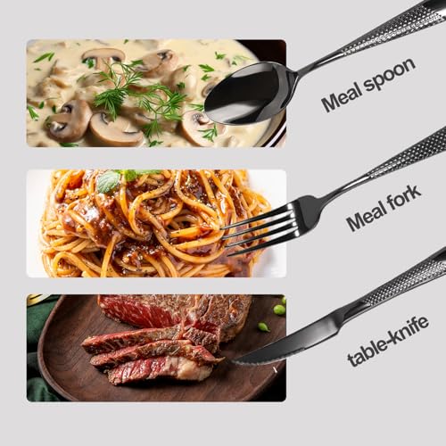 Alta qualità e durata: realizzato in acciaio inossidabile di alta qualità, questo set di posate è antiruggine, resistente alla corrosione e durevole. I manici ergonomici garantiscono una presa comoda e le posate mantengono la sua finitura lucida con la corretta manutenzione.