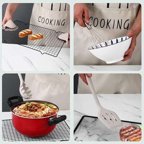 【Materiale di alta qualità】 Il Set di Utensili cucina è realizzato in silicone e acciaio inossidabile per alimenti, atossico e inodore e resistente al calore fino a 230 gradi Celsius. Utensili cucina silicone Non devi preoccuparti che gli utensili in silicone si sciolgano o cadano durante la cottura.