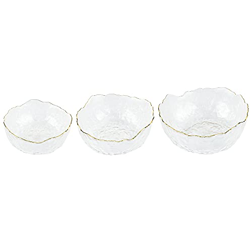 Navaris Set Ciotole da Portata in Vetro – Insalatiere Trasparenti Ø 19,5cm 16cm 12,5cm con Bordi Dorati – Ciotola per Cucinare e Servire -20-100°C