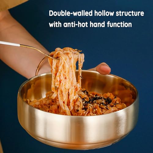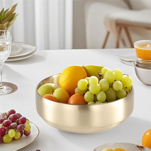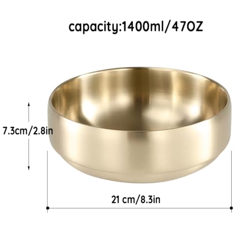 SANQIAHOME 47oz/8.3″ Insalatiera in acciaio inossidabile di qualità 2 pezzi/set – Antiscottatura a doppia parete, lavabile in lavastoviglie, grande ciotola da portata dorata, zuppiera