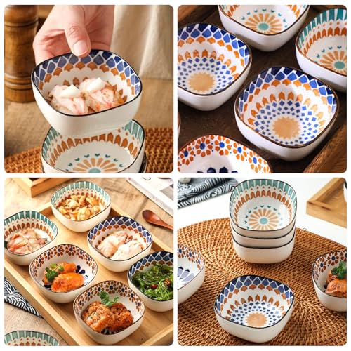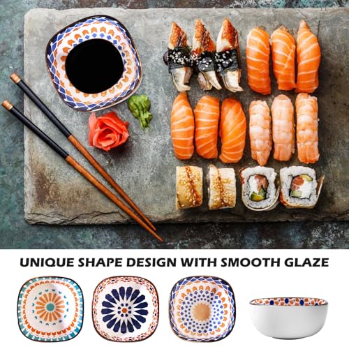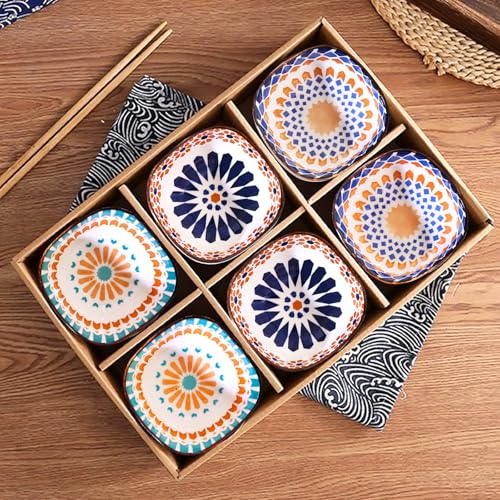 Set di 6 piatti da dip in ceramica, piatti quadrati giapponesi vintage, ideali per la salsa di soia, snack, frutti e dolci, perfetti per cene di famiglia, feste, matrimoni e Natale.