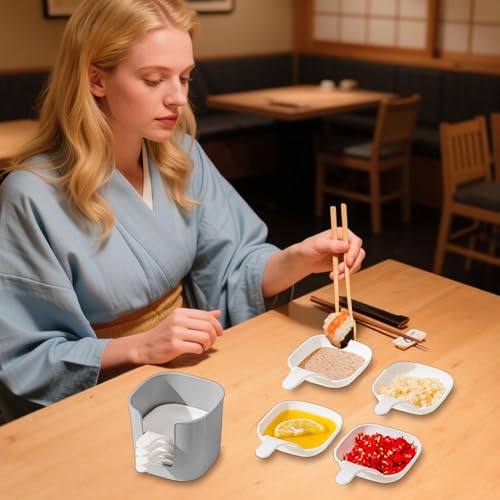 6 Piece Dipping Set with Handy Serving Tray: This condiment bowl set includes six individual sauce dishes and a convenient serving holder tray, perfect for organizing dips, snacks, sauces, and condiments in stylish and functional layout