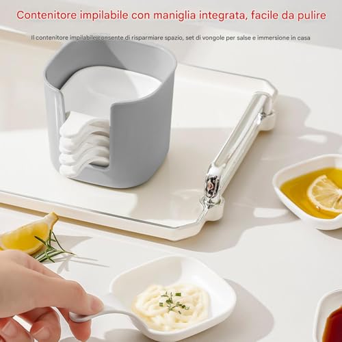 Sauce Dish, 6 Piece Dipping Bowl Set, Handle Easy Serving, Dip Platter with Holder Tray, Condiment Bowl Sets for Yogurt, Snacks, Dinner, Picnics, Restaurants, 3.62×4.92×3.15 inches