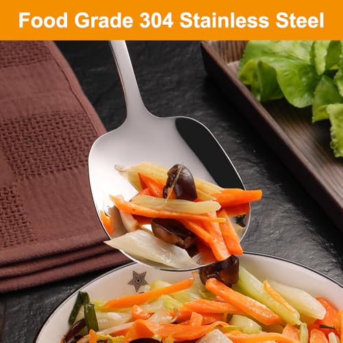 MATERIALE DI ALTA QUALITÀ: Il cucchiaio grande è realizzato in acciaio inox 304 per uso alimentare con finitura lucida, superficie liscia, rivestimento antiaderente, antiruggine, buona resistenza e durata, il cucchiaio in acciaio inox è ideale per porzionare, cucinare e mescolare.