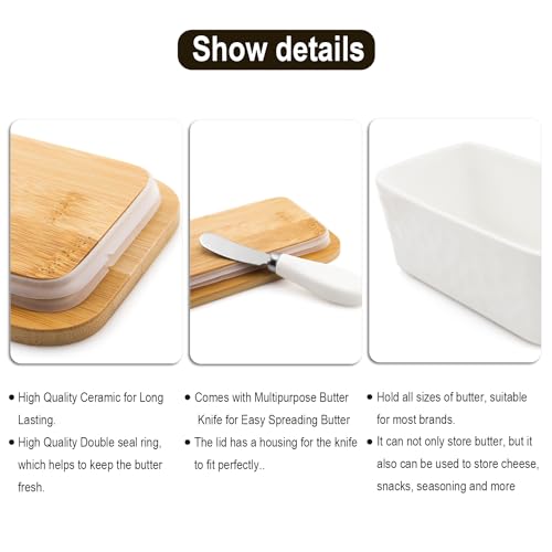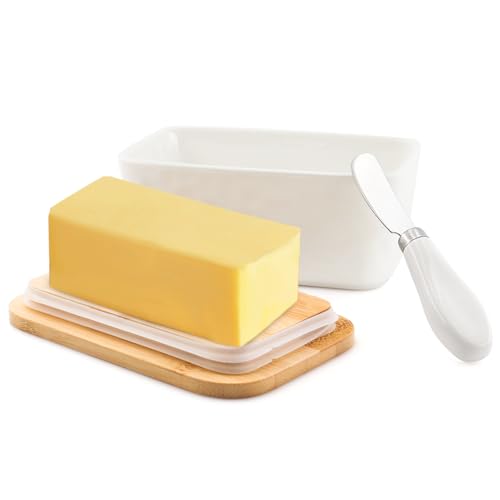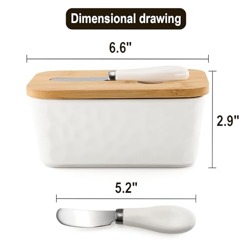 DESIGN ELEGANTE: Questa confezione per il burro è realizzata in ceramica bianca con coperchio abbinato per mantenere fresco il burro.