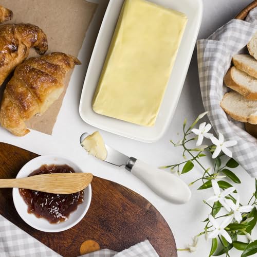 IDEALE PER LA COLAZIONE: Con il suo design elegante e pratico, questo contenitore per burro con coperchio è l’alleato ideale per servire il burro a colazione o a merenda.