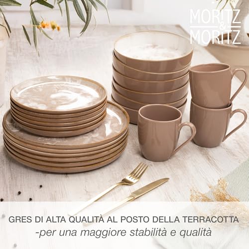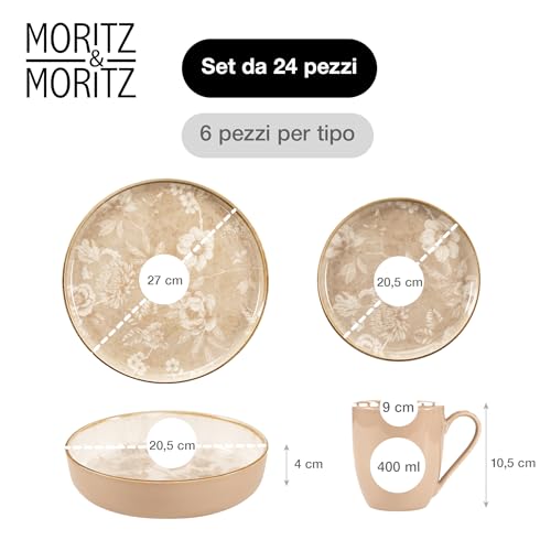 Moritz & Moritz Mariella – Servizio da tavola in gres porcellanato per 6 persone, 24 pezzi, moderno servizio da tavola in beige con design giocoso, facile da pulire con set di piatti, ciotole e tazze