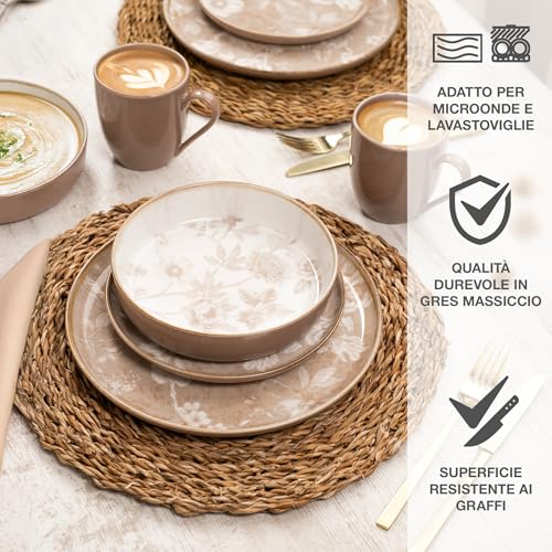Senza tempo e armonico: il motivo floreale beige del set di stoviglie da 6 persone porta un’atmosfera rilassata al tuo tavolo: sobrio, moderno e perfetto per un look pulito con carattere
