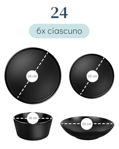 ✅ CREA IL TUO SET DA SOGNO: Scegli tra stoviglie nere opache in set singoli (piatti principali, colazione, fondo, ciotole, tazze) o servizio da tavola multiplo per personalizzare il tuo set perfetto.