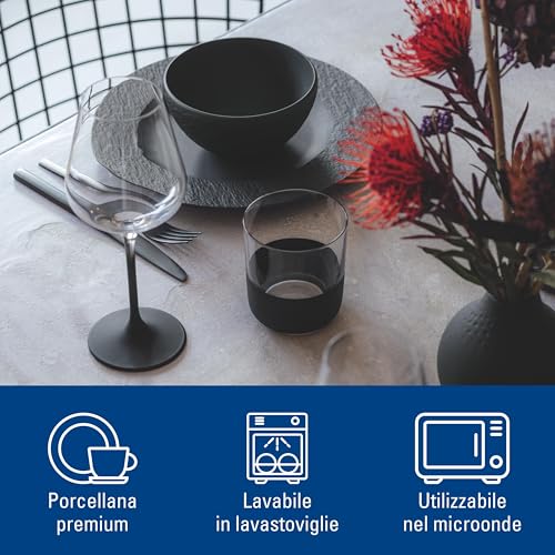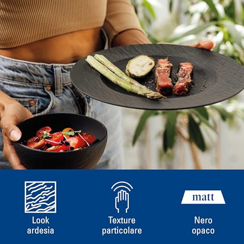 Villeroy & Boch – Manufacture Starter Set 6 Pezzi Nero, Lavabile in Lavastoviglie, Adatto per Microonde, Piatti Ardesia, Scodella, Servizio, Set di Stoviglie, Porcellana Premium
