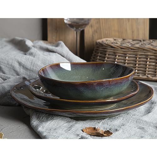 Stile: Set piatti 6 persone in ceramica dallo stile moderno e innovativo, pregiata alvorazione a mano con bordi irregolari che danno un tocco di genuinità al vostro tavolo da pranzo e un design irresistibile con rifinitura a mano in glassa reattiva