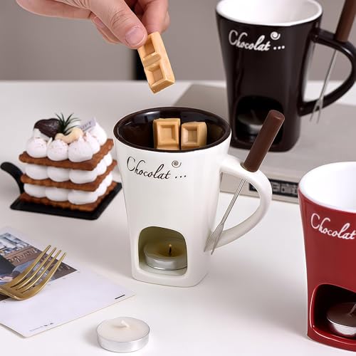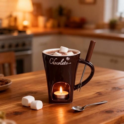 Easy to use & clean: Add chocolate/sauce, light a standard tealight under the cup, and stir occasionally; the mug is dishwasher-safe for quick cleanup.